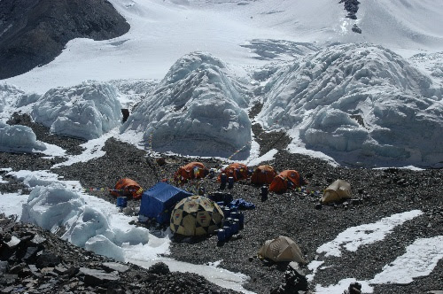the northern slope of Mount Qomolangma the forward line of traditional camps, its altitude is uncertain. From the late 1990s, to climb Mount Qomolangma in China more and more foreign climbers, only Beiao below one kilometer-long strip of the valley, were built camps, camps for different ranks of the height difference may reach an altitude 200 Meters. Visible on the map of the camps, almost on its height in about 6400 meters above sea level. At the top of the snow line and the junction of rock, is usually built camp to camp ahead of the top choices, that is 6,500 meters above sea level. However, this position can choose to ride because the space is not big tent, if a large number of climbers, not suitable for the construction business here, and the choice down to a more spacious camp site.